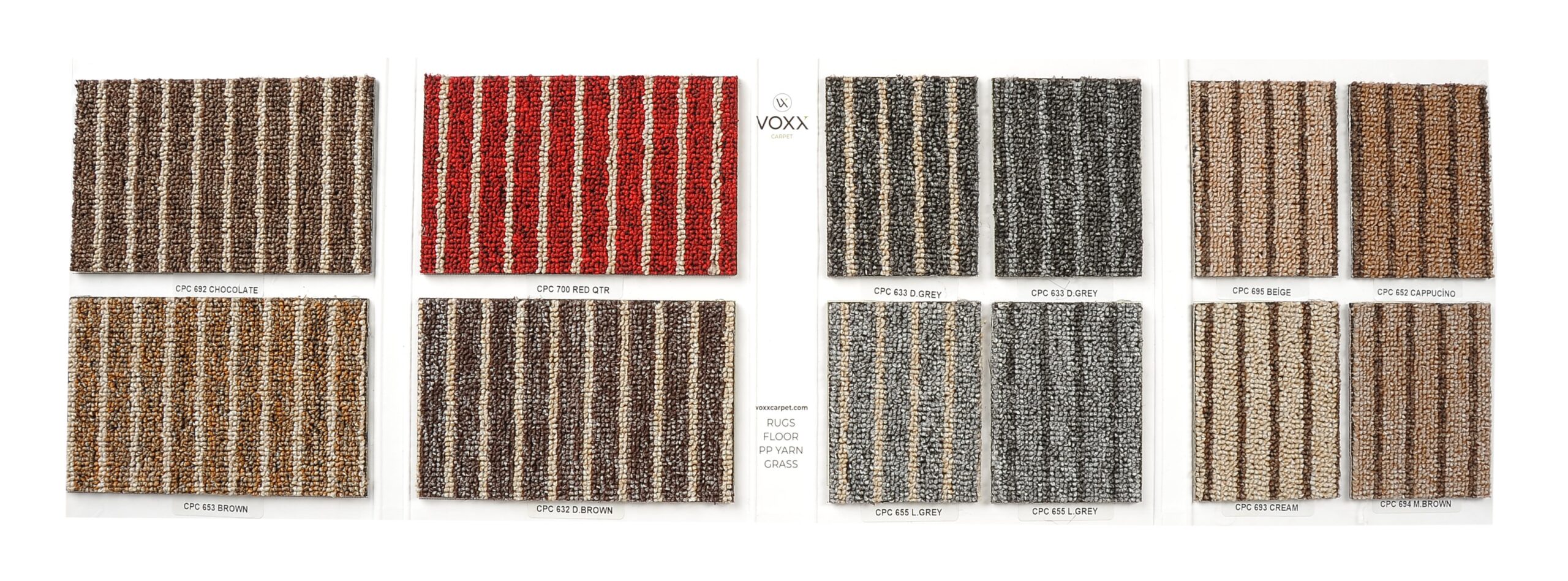 1/10 dokuma tezgahlarında %100 polipropilen ipliklerden desenli olarak üretilmektedir. Müşteri isteğine bağlı olarak çeşitli renk ve kalitelerde farklı sırt kaplamaları ile üretim gerçekleştirilmektedir. Üretimde kullanılan iplikler loop pile formunda ve hav yüksekliği 4-5 mm aralığında olup düz zeminde birden fazla renk kullanılmak suretiyle halıda desen görünümü sağlanmış olmaktadır.| Koleksiyon Grubu | Özellikler |
